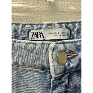 Keywords: Zara jeans, Mom jeans, High rise jeans, Cropped jeans, Frayed hem jeans, Light wash denim, Women's jeans, Zara denim, Size 6 jeans, Casual jeans, Comfortable jeans, Fashion jeans, Trendy jeans