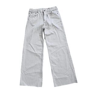 Brand New Zara cream beige wide leg, high rise denim jeans for women in size 6. These boho-style jeans feature a solid pattern, light fabric wash, and a high rise waist with a zip closure. Waist Measures approx. 15.5 inches laying flat With a 29-inch inseam, these versatile jeans can be dressed up or down for various occasions, making them a must-have addition to any woman's wardrobe.