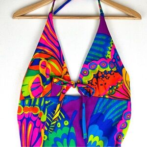 Vintage Psychedelic Butterfly Print Halter Maxi Dress 60-70's Hawaiian
