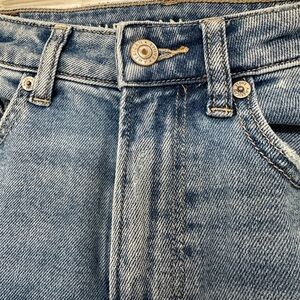 American Eagle mom straight jeans in a classic light wash with subtle distressing. These are a size 6 regular with stretch, so they’re comfortable while still holding their shape. Straight leg mom fit that’s easy to style casually or dressed up. Gently worn and in great condition with no stains or major flaws. From a smoke free home with one cat. Feel free to ask questions or make an offer.