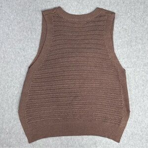 Carly Jean Los Angeles chic and versatile V-neck knit sweater vest. Rich chocolate hue. Ideal for layering.
