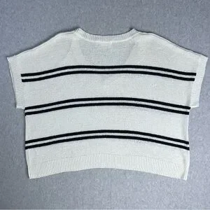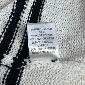 Carly Jean Los Angeles Stylish V-neck sweater with bold stripes. Loose fit. Perfect for layering or wearing alone. Adds a modern touch to any outfit. See photos for small stain on front of sweater.