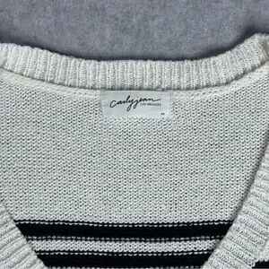Carly Jean Los Angeles V-Neck Sweater White with Black Stripes