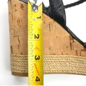 Step out in style with these elegant black wedge sandals from Prada. Perfect for any occasion, these shoes offer both comfort and sophistication.