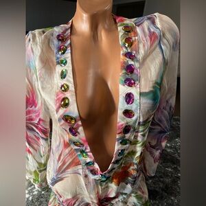 NWT Colorful Floral V-Neck Women's coverup Top by beach bunny size S