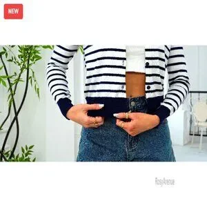 Style: Cropped crewneck cardigan with button closure