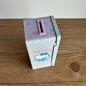 Hello Kitty 2004 Metal Tin Locker Coin Bank Pink, Blue Winter Theme