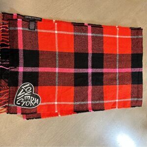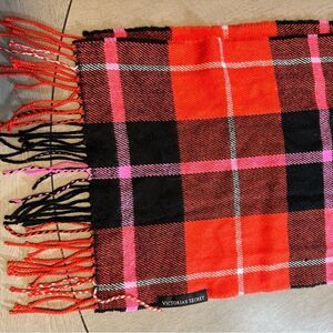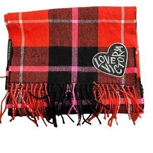Victorias Secret Red Soft Winter glitter logo Check Plain Fringe Shawl Scarf