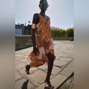 N-neck design featuring a stylish knot and elegant pleats. Broad straps for comfort. Soft inner lining. Chic hem with a front slit. Discreet back zip closure for a seamless finish. MULTICOLORED | 8812|287|330 COMPOSITION OUTER SHELL 100% polyester LINING 100% viscose