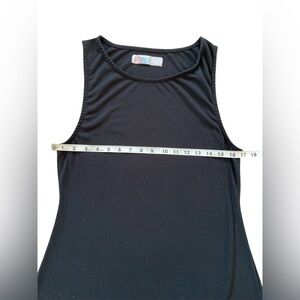 Comfy little black jersey fabric dress or tunic. Sleeveless tank style.