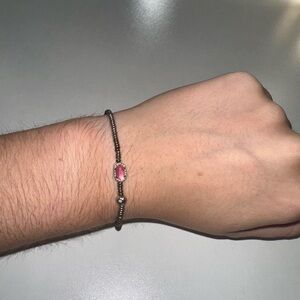 Chic bracelet with pink stone and brown beads. Stylish and versatile.