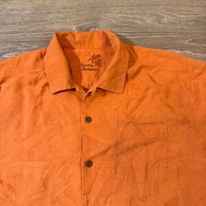 Tommy Bahama Orange Silk Leaf Print Short Sleeve Button Up Shirt Men's M