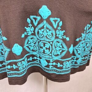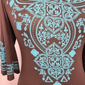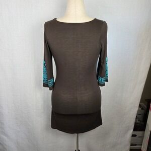 Ad Hoc Brown Mini Dress Turquoise Embroidered Cotton Knit Bohemian Women's S