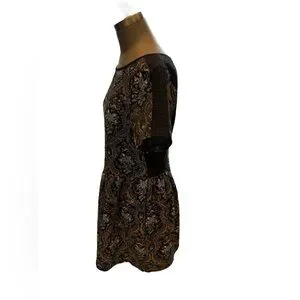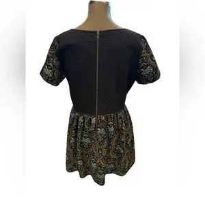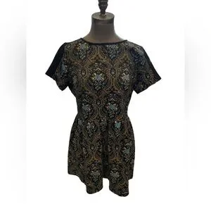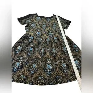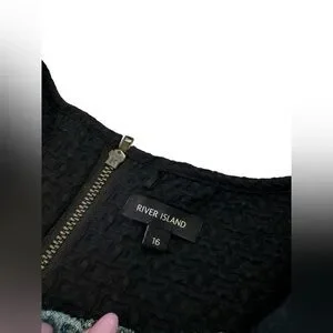 River Island black and blue A-line skater dress with a tapestry brocade design. Size US 12/UK 16.