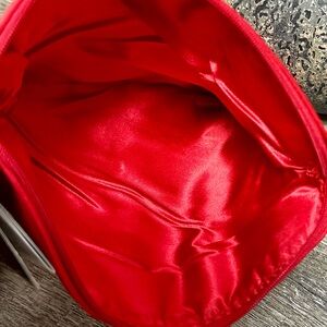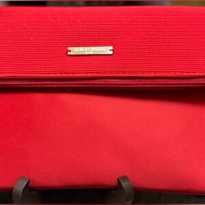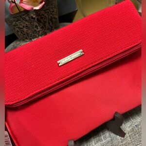 Elegant red wristlet by Giorgio Armani. The item in the image is a Giorgio Armani Beauty red clutch bag