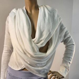 Pure DKNY Linen Open Front Cardigan Sweater Wrap White Size P/S