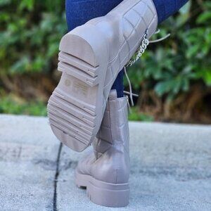 Womens Chunky Block Heel Ankle Combat Boots Taupe Color
