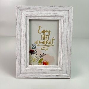 White Wood Washed Farmhouse Style Photo Frame with “Enjoy Every Moment” quote