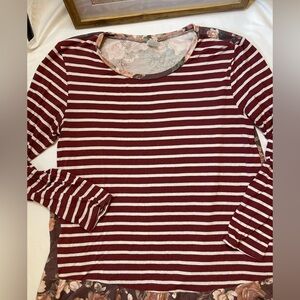 -Features: Sun & Moon size large red/burgundy striped floral shirt. No stains or holes.