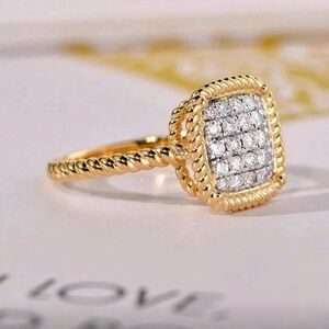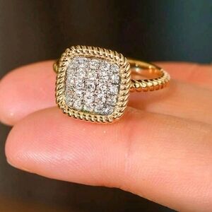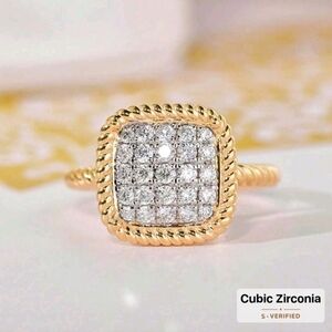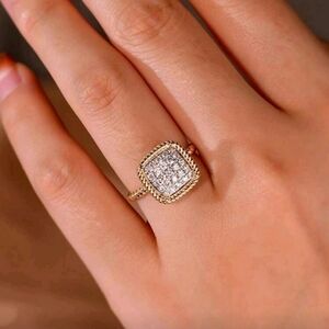 Huitan Gold and Silver Women's Ring with Cubic Zirconia Square Shape