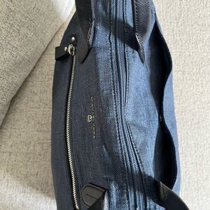 Michael Kors Denim Tote with Luggage sleeve Dusty and charm included 18x12