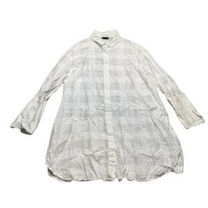 👚 AKRIS Oversized Sheer Plaid Button-Down Shirt White Size 12 👚