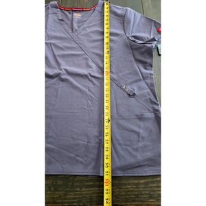 Brand new Dickies Xtreme Stretch women's scrub top in size 4XL. This modern mock wrap V-neck scrub top is designed for comfort, flexibility, and a professional fit, perfect for long shifts and active work environments.