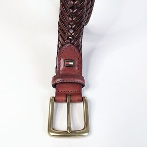 Tommy Hilfiger Braided Vegetable Burnish Genuine Leather Belt Brass Buckle XXL
