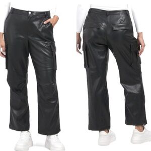 7 for ALL MANKIND Vegan Faux Leather Black Cargo Pants Joggers Size Small