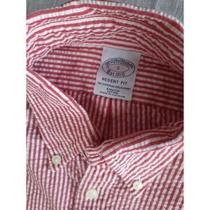 Brooks Brothers Regent Fit Red Stripe Wrinkle Seersucker Button Down Shirt Men S