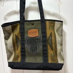 Pendleton Wool Tote Bag Southwestern Aztec Canvas Trim Logo Made In USA EUC