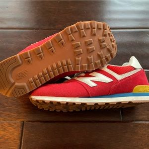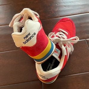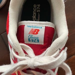 Vibrant red sneakers with white accents. Comfortable and stylish. love the 80's look, purchased them but they were too big on me. =/ my lost your gain.
