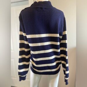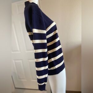 Kirundo~Super Soft~Navy & Off-White~Ribbed Knit~Striped~Pullover~Sweater~Size S
