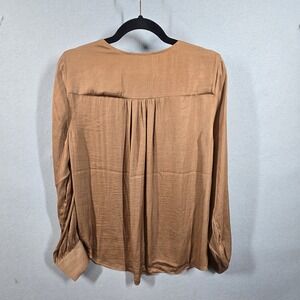 Maison d'Amélie Blouse Womens Medium Brown Long Sleeve V Neck Polyester Cuffed