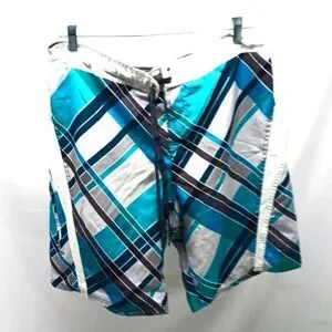 OP Blue and White Geometric Board Shorts Lined. Mens Large 36/38 NWOT