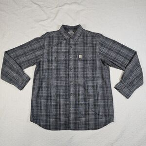 Carhartt Relaxed Fit Gray Plaid Long Sleeve Button Down Shirt
