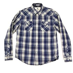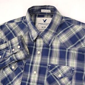 American Eagle Outfitters Shirt Mens Medium Blue Plaid Western Snap Vintage Fit