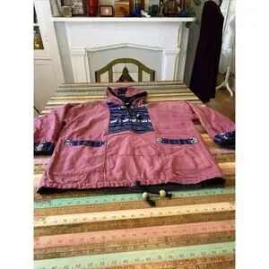 Vintage Baja Poncho Hoodie M Blanket Pullover Hippie Festival India Thailand