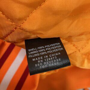 This vibrant orange satin bomber jacket features the Tampa Bay Buccaneers logo with professional embroidery. Its quilted interior provides comfort and style.