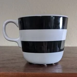 Adorable small mug. Black and white horizontal stripes.