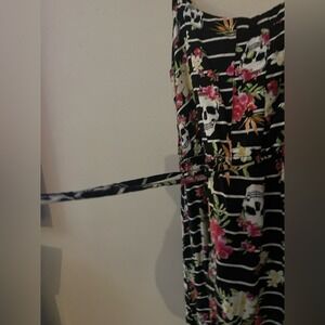 Hot Topic Skull and Roses mini dress skater Goth vintage medium floral sleeveless edgy pockets button detail concerts draw string waist