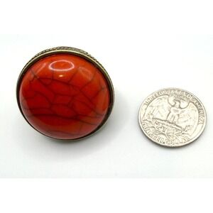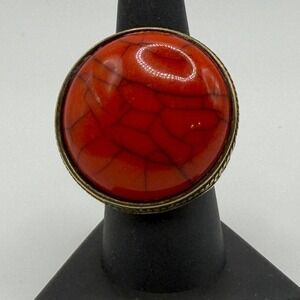 Vintage Style Red Cabochon Statement Ring Brass Band Size 8.5 Unisex