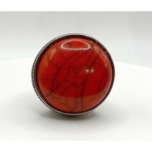 Stone: Red cabochon (appearance consistent with howlite-style or simulated stone)