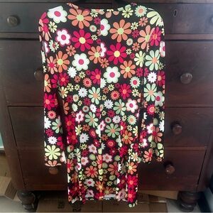 For Grand PL Black Red Floral Long sleeve V Neck Dress Slinky Hippie Boho Medium