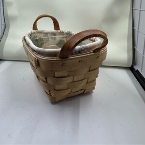 Longaberger 1999 Divided Rectangle Basket Floral Liner/Protector/Leather Handles