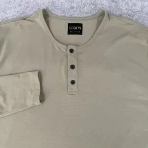 CUTS Clothing Men's Henley Shirt X-Large Green Split-Hem Performance Casual