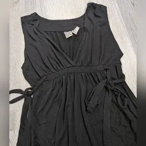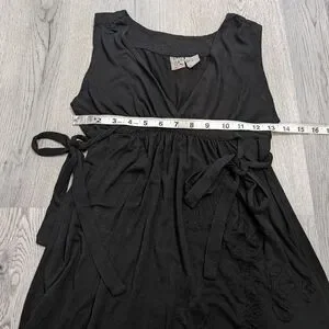 This listing is for a retro Y2K Billabong dress, super cute and perfect for Goth Girl Summer. It is black with black patchwork embroidered leaf design and has side ties. It has a V neck and an empire waist. Size Large but please refer to measurement photos. Such a nice base piece for your summer gothic closet! Bring back some of that vintage Y2K nostalgia! VGUC with no known flaws.