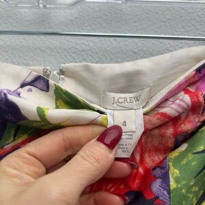This J.Crew dress in size 4 is a chic and classy option for a cocktail party or formal event. Made from 100% silk, the dress features a beautiful floral pattern in a multicolor design. The strapless style with a sweetheart neckline and zip closure adds a touch of elegance. Additionally, the dress includes pockets for added convenience. Great for summer, fall, or spring occasions, this knee-length sheath dress from a reputable brand like J.Crew is sure to make a stylish statement at your next special event.