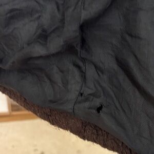 Cozy and chic teddy coat. Features a plush texture and button closure. Ideal for cold weather. Over-sided and roomy. Lining around arm holes has been mended, and a small hole at the bottom rear left inside lining (see 3 pics near the end). For accurate colour see last pic. Coat is in good condition otherwise, lots of miles left :)