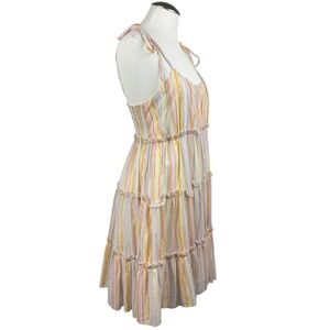 Sundays Women's Striped Tiered Dress Size Small Tie Strap Sleeveless Pastel Mini Summer